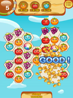 Your goal in Fruita Swipe is to collect a set number of different fruit with only a few moves. Make chains out of three or more of the same coloured fruits to collect them and clock up the points. Take your time and think about it carefully – the longer the chain you can make, the more points you'll get for that move. Use the fancy extras like Multi-Fruit to link even more fruit together, or explode a whole row of playing boxes with the mighty Fruit Explosion! Once you've collected the set number of fruit, you can use your remaining moves to get even more points and beat the high score!